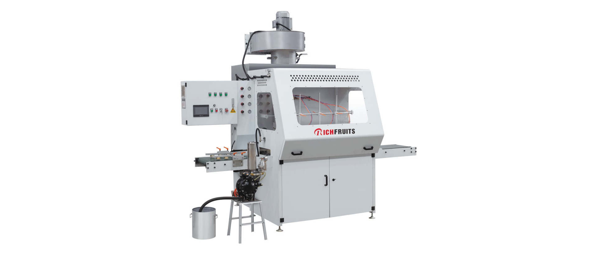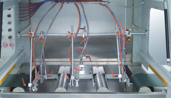 自動噴漆機 300MM 線條適用于門框線、畫框、舌槽企口板、門窗配件、家具配件、踢腳線、地板、塑鋼型材和木塑線條等條型工件的三個表面,針對PU、NC、PVC、UV和水性油漆等各種油漆進(jìn)行連續(xù)自動噴漆。自動噴槍標(biāo)準(zhǔn)配置采用原裝進(jìn)口日本巖田自動空氣噴槍,噴漆室輥輥涂采用單邊懸掛結(jié)構(gòu),配刮刀。