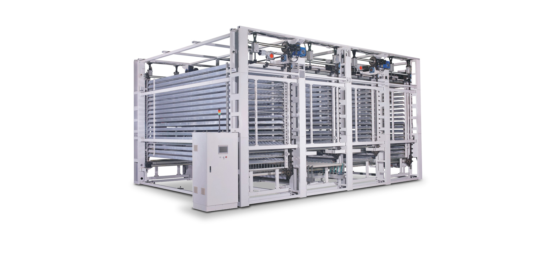 利用機器上部空間,采用立體式結構,適用于規(guī)格較為統(tǒng)一的實木家具、實木復合門、美式櫥柜、套房家具、衛(wèi)浴柜、展示柜、工藝品、裝飾板等板式工件,進行自動化噴漆后的長時間(30~120分鐘)的待干,實現(xiàn)在線連續(xù)干燥作業(yè),噴漆后的長時間待干能夠兼顧流平性、光滑性和漆膜干燥的性能。
