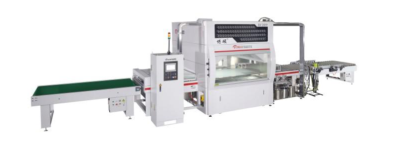 設(shè)備特色 自動(dòng)噴漆、砂光、噴色、修色和面漆,不下線連續(xù)生產(chǎn)。