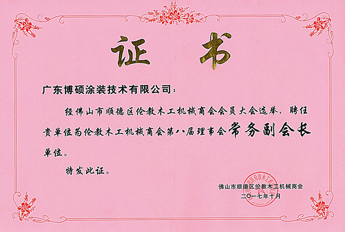 • 林機(jī)協(xié)會(huì)涂裝技術(shù)與裝備分會(huì)會(huì)長(zhǎng)聘書(shū)