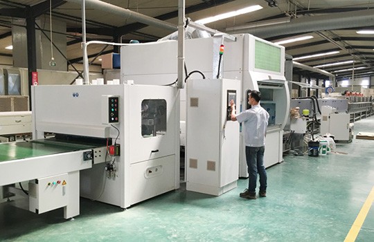 工藝要求 無溶劑UV底漆、水性面漆 產(chǎn)品種類 木門、門套、線條 產(chǎn)線數(shù)量 3條 設(shè)備特色 UV無溶劑底漆,微波10分鐘干燥水性面漆,達(dá)到PU相同質(zhì)感 生產(chǎn)產(chǎn)能 UV底漆噴涂線:400套門/8h (生產(chǎn)員5人/線)