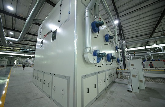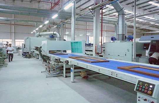 設(shè)備特色 帶回收的環(huán)保PU漆及立體干燥房,門扇雙面噴漆+立體干燥。