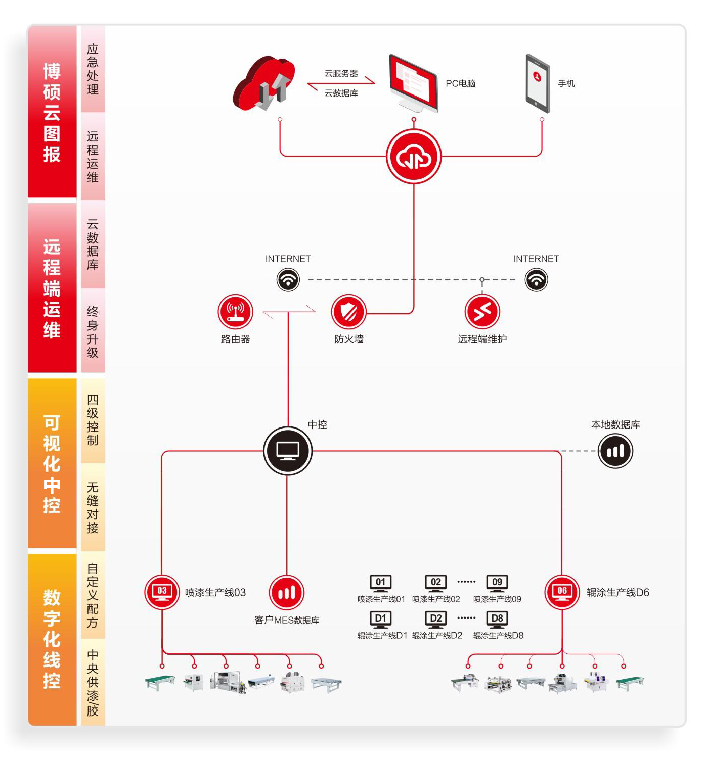 數字化云服務”,它包括:數字化線控、可視化中控、遠程端運維、博碩云圖報,是一整套完整的數字化、智能化體系。
