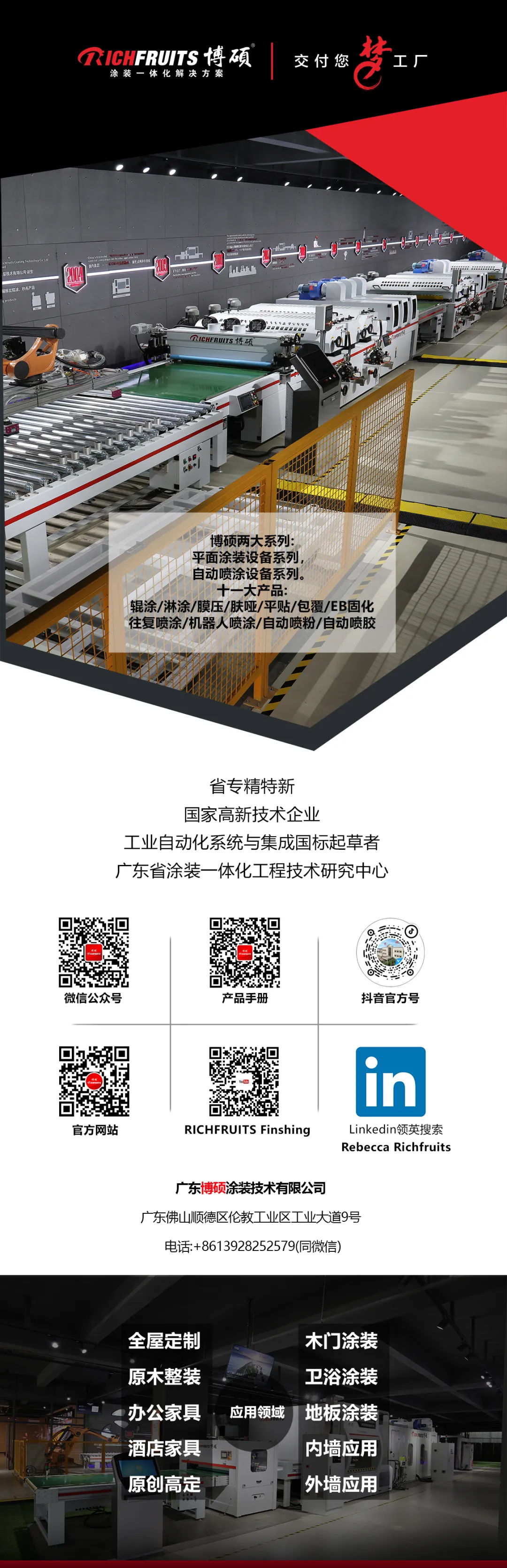 博碩研發(fā)了不需要氮氣技術(shù)路線,申請了PCT專利,推動了準分子技術(shù)的廣泛普及應(yīng)用)、EB板,意式涂裝木皮板,這些表面效果無論是板還是膜都是通過我們的涂裝設(shè)備加工完成的,概括一句博碩是干什么的?就是在大家居和大建材上《專做表面文章》。