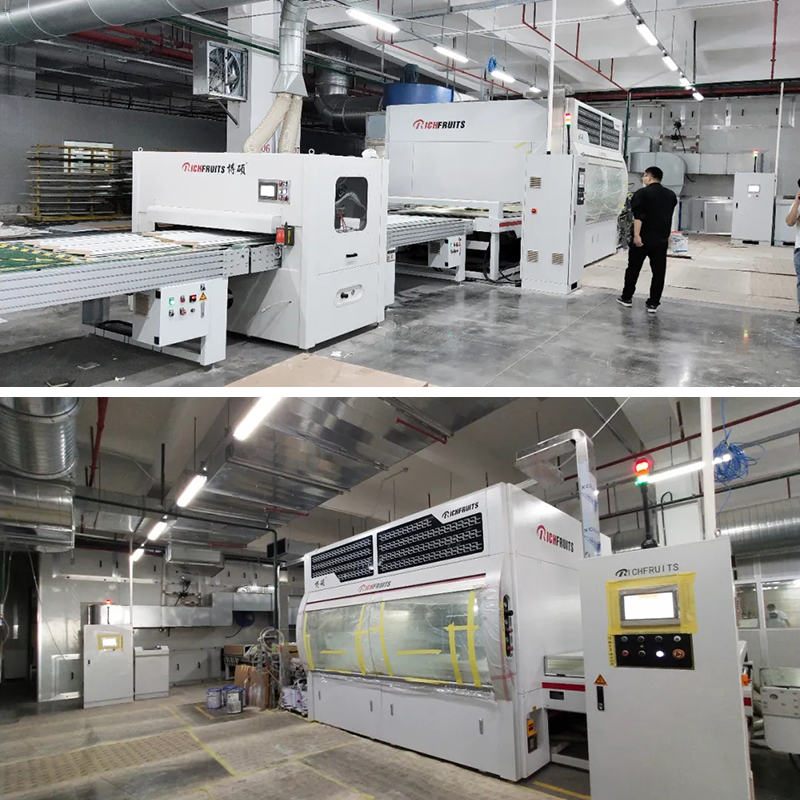 選用通用化的環(huán)保PU底漆自動噴漆線,可以同時完成門套和線條的底漆噴涂。