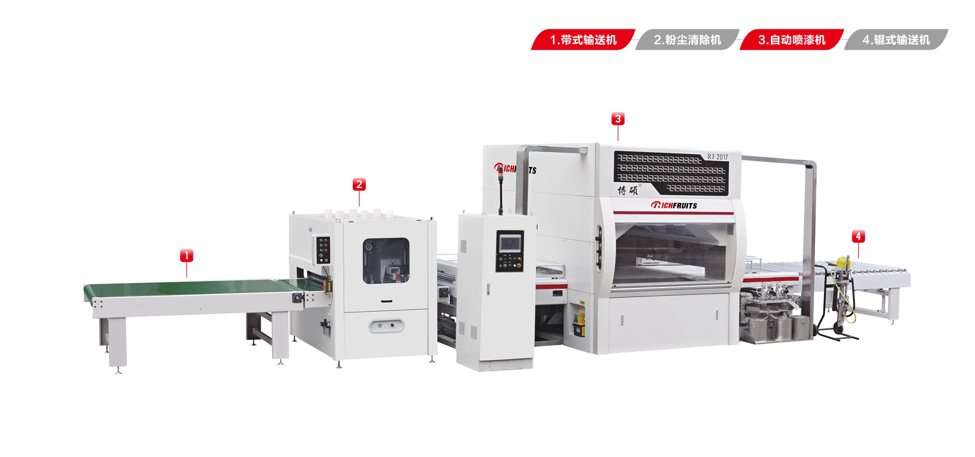 適用于板式家具、實木門、櫥柜門、工藝品、裝飾板、硅酸鈣板、玻鎂板、水泥纖維板的板式加工件的平面和四個側(cè)邊進行高質(zhì)量、大批量連續(xù)噴漆。
