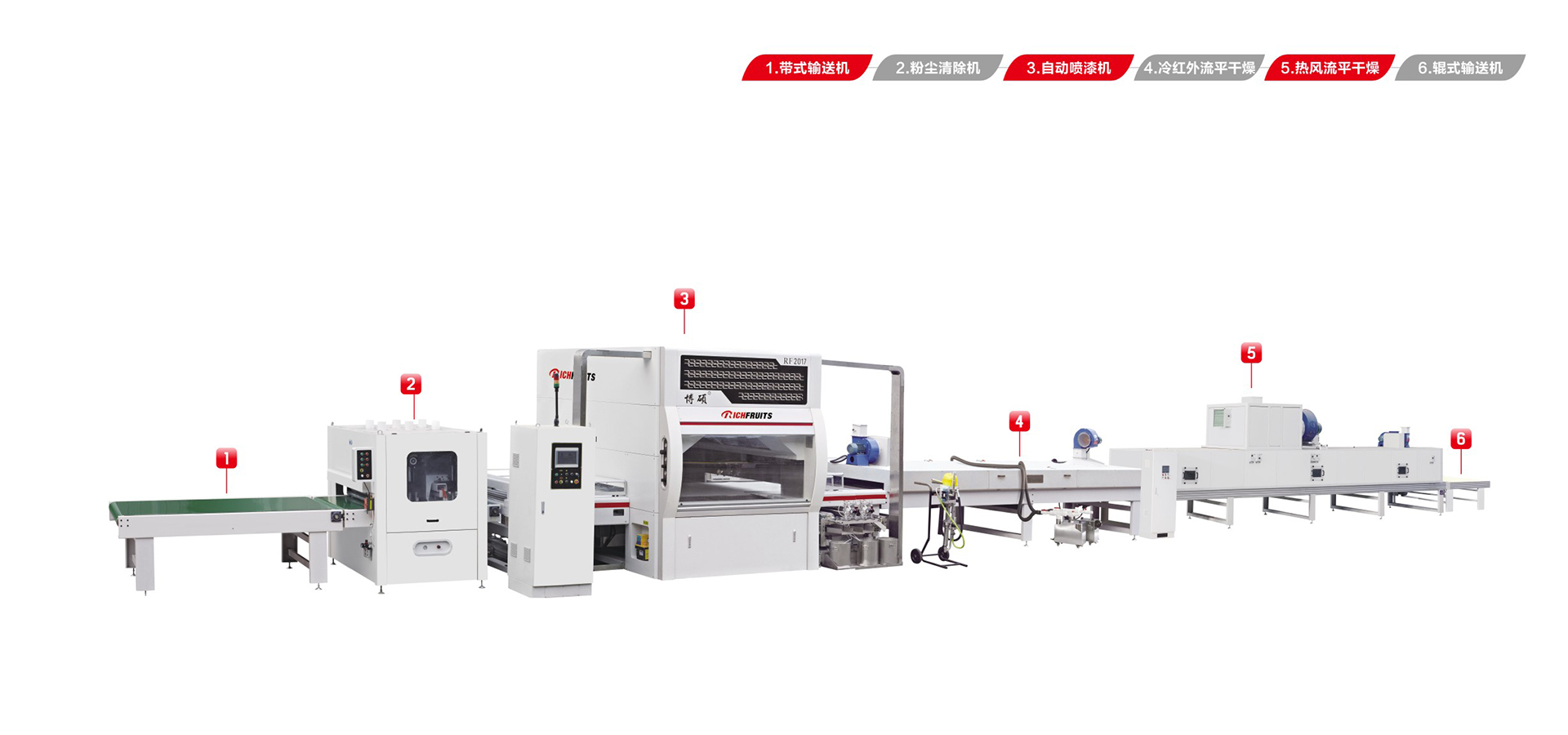 適用于板式家具、實(shí)木門(mén)、櫥柜門(mén)、工藝品、裝飾板、硅酸鈣板、玻鎂板、水泥纖維板的板式加工件的平面和四個(gè)側(cè)邊進(jìn)行高質(zhì)量、大批量連續(xù)噴漆。