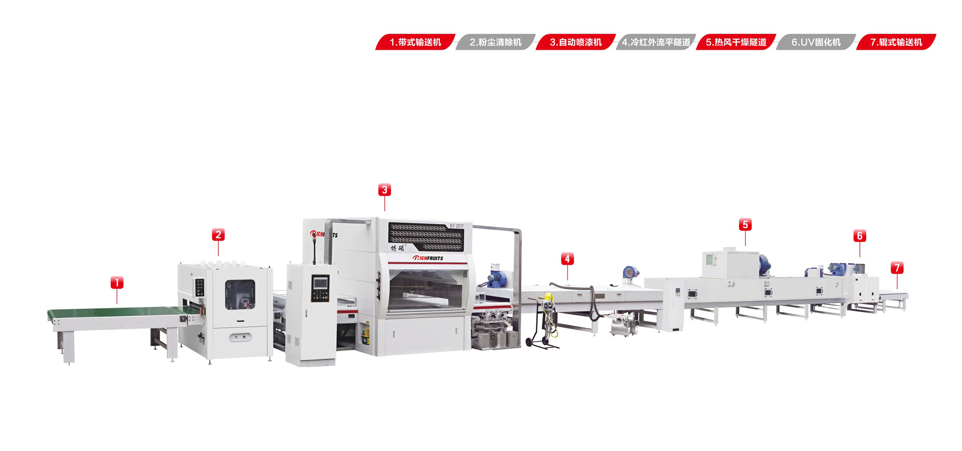 適用于板式家具、實(shí)木門(mén)、櫥柜門(mén)、工藝品、裝飾板、硅酸鈣板、玻鎂板、水泥纖維板的板式加工件的平面和四個(gè)側(cè)邊進(jìn)行高質(zhì)量、大批量連續(xù)噴漆。