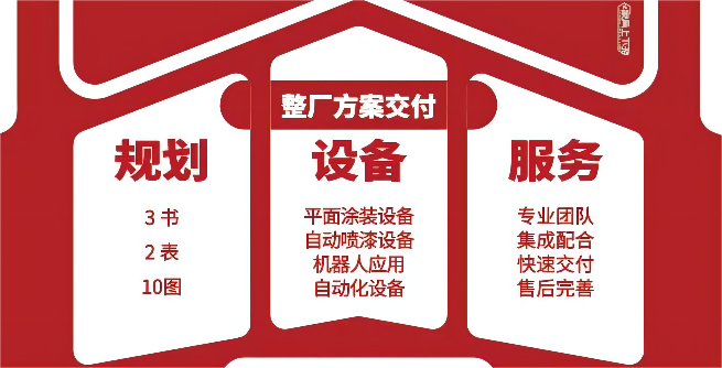 服務”部分包括博碩團隊的前、中、后期服務,以及集成涂裝工廠必要的,諸如環(huán)保、吸塵、空氣壓縮等輔助設施及配套設備等。
