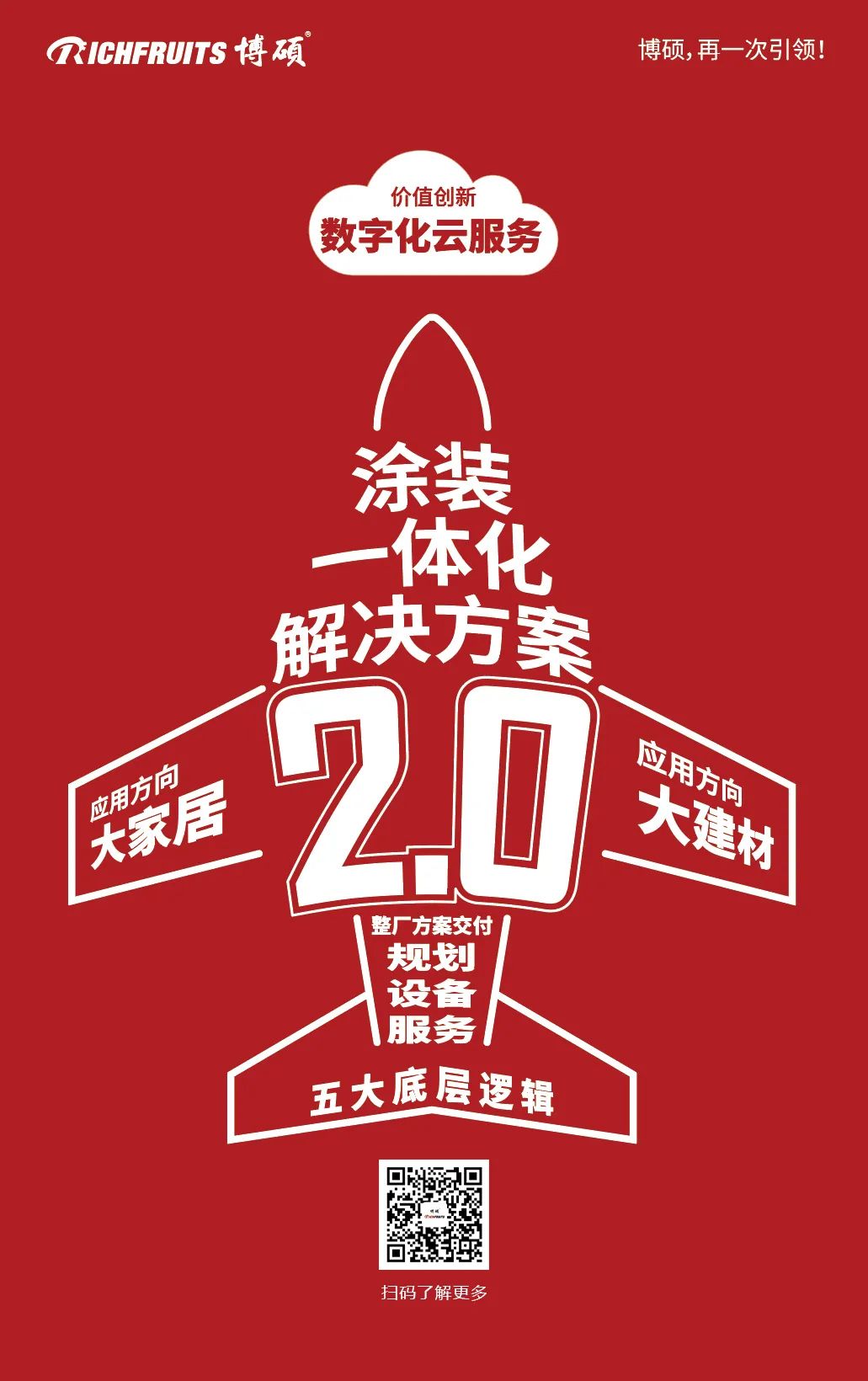 博碩涂裝一體化解決方案2.0主題畫面的中心便是數字“2.0”,預示著這是一個