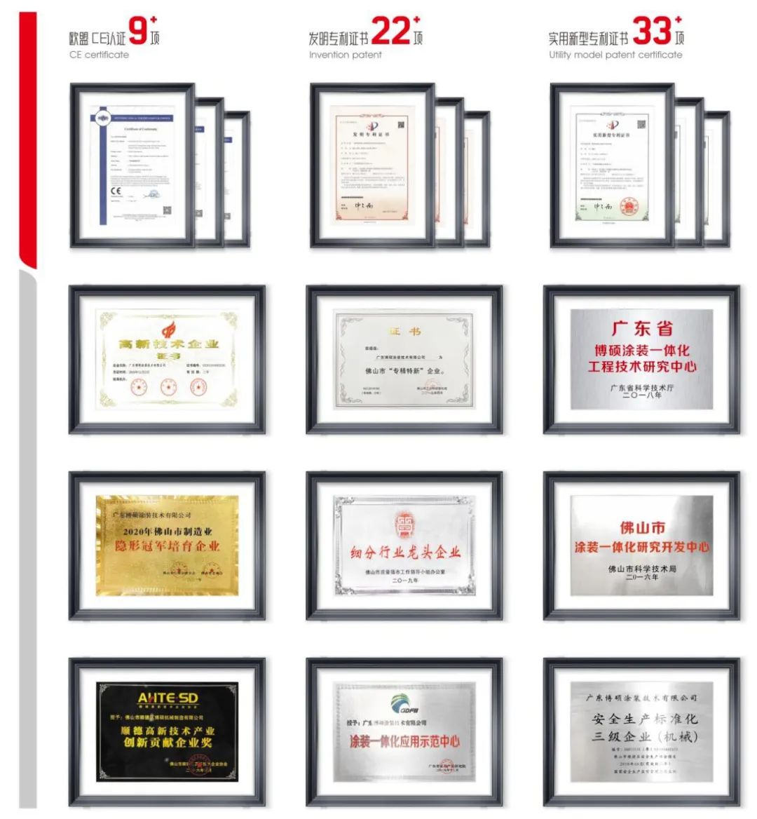 公司在客戶方案的設(shè)計(jì)方面擁有業(yè)界頂級的專家,在研究開發(fā)上運(yùn)用德國、意大利先進(jìn)的技術(shù)平臺,研發(fā)制造出滿足木制品和綠色建材行業(yè)需求的具有自主知識產(chǎn)權(quán)的自動(dòng)化涂裝生產(chǎn)線,并提供專業(yè)的一體化的整體解決方案、技術(shù)支持和售后服務(wù)。博碩公司已通過SO9001:2015認(rèn)證、CE認(rèn)證,是國家高新技術(shù)企業(yè),廣東省專、精、特、新,是噴漆機(jī)行業(yè)標(biāo)準(zhǔn)起草者。