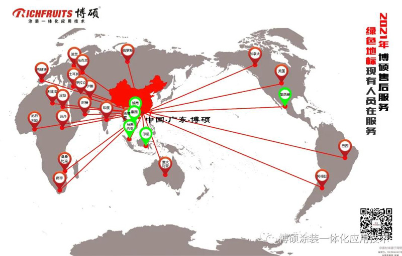 博碩公司積極響應(yīng)政府“一帶一路”的政策,憑借在涂裝設(shè)備產(chǎn)業(yè)的持續(xù)技術(shù)創(chuàng)新、高品質(zhì)的入式技術(shù)服務(wù)能力,素以性能穩(wěn)定、高性價比、綜合應(yīng)用強在行業(yè)內(nèi)著稱,產(chǎn)品服務(wù)于國內(nèi)31個省、市、自治區(qū);遠銷俄羅斯、烏克蘭、伊朗、美國、印度、波蘭、阿曼、羅馬尼亞、土耳其、阿爾巴里亞、墨西哥、尼日尼亞、伊拉克、迪拜、巴西、越南、印度尼西亞、馬來西亞、斯里蘭卡等全球50多個國家。